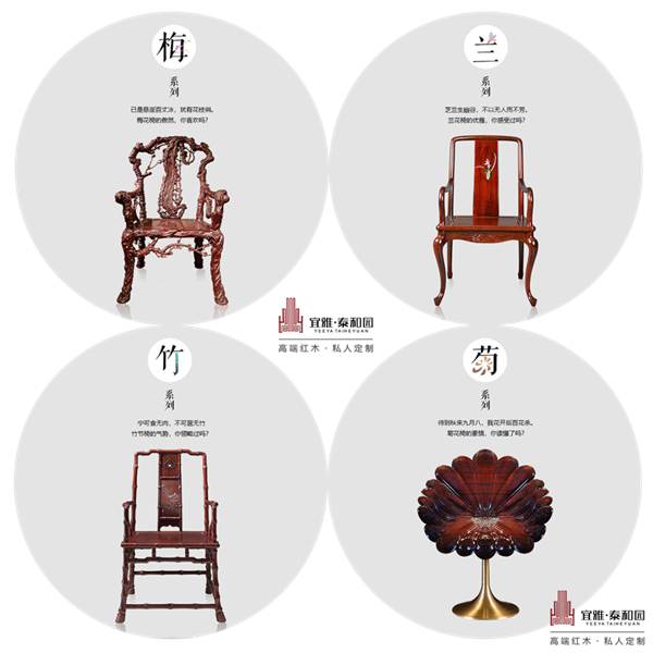 重溫泰和園當代君子系列,欣賞國人骨子里的風雅。泰和園當代君子系列在風格上追求品位獨特和表現(xiàn)優(yōu)越,梅蘭竹菊“四君子”代表了泰和園對傳統(tǒng)文化的尊重和現(xiàn)代時尚設(shè)計的完美融合,是社會精英最值得擁有的最具當代潮流氣息的中式家具。