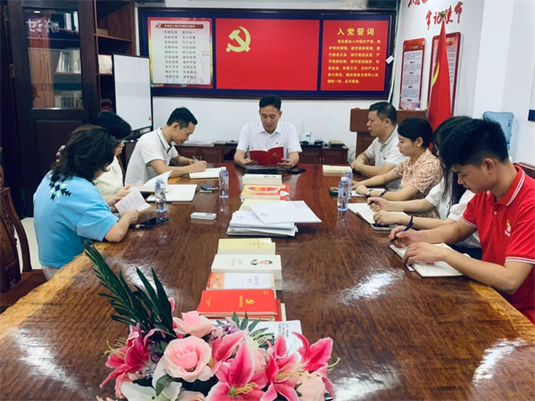 國(guó)方家居黨支部書(shū)記陳新平(中)帶領(lǐng)全體黨員進(jìn)行安全生產(chǎn)學(xué)習(xí)