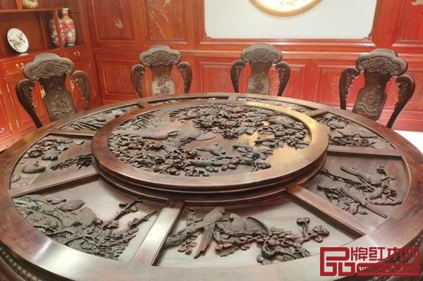 國(guó)方家居《百鳥(niǎo)朝鳳大圓臺(tái)》現(xiàn)場(chǎng)展示圖