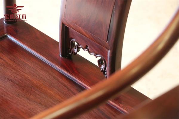在紅木家具的椅類家具中,常見坐面與扶手相對較高和寬,按照“正襟危坐”的要求而制作的,坐在這種紅木椅上,可以坐出符合禮儀的姿態(tài)。