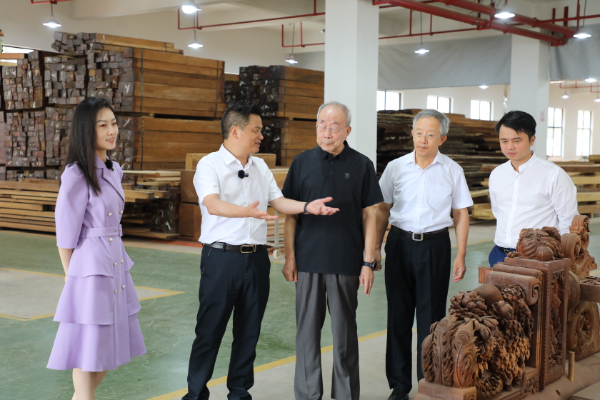 全國(guó)工商聯(lián)藝術(shù)紅木家具專業(yè)委員會(huì)專家顧問、《紅木家具通用技術(shù)條件》標(biāo)準(zhǔn)主要起草人曹新民,全國(guó)工商聯(lián)藝術(shù)紅木家具專業(yè)委員會(huì)專家顧問、華南農(nóng)業(yè)大學(xué)教授李凱夫,全國(guó)工商聯(lián)藝術(shù)紅木家具專業(yè)委員會(huì)執(zhí)行會(huì)長(zhǎng)、《大國(guó)匠心&大國(guó)工廠》欄目策劃人、品牌紅木CEO林偉華,全國(guó)工商聯(lián)藝術(shù)紅木家具專業(yè)委員會(huì)主席團(tuán)主席、浙江省工藝美術(shù)大師、中信紅木董事長(zhǎng)李忠信與主持人走進(jìn)中信紅木整裝工廠