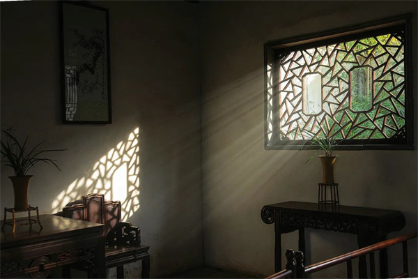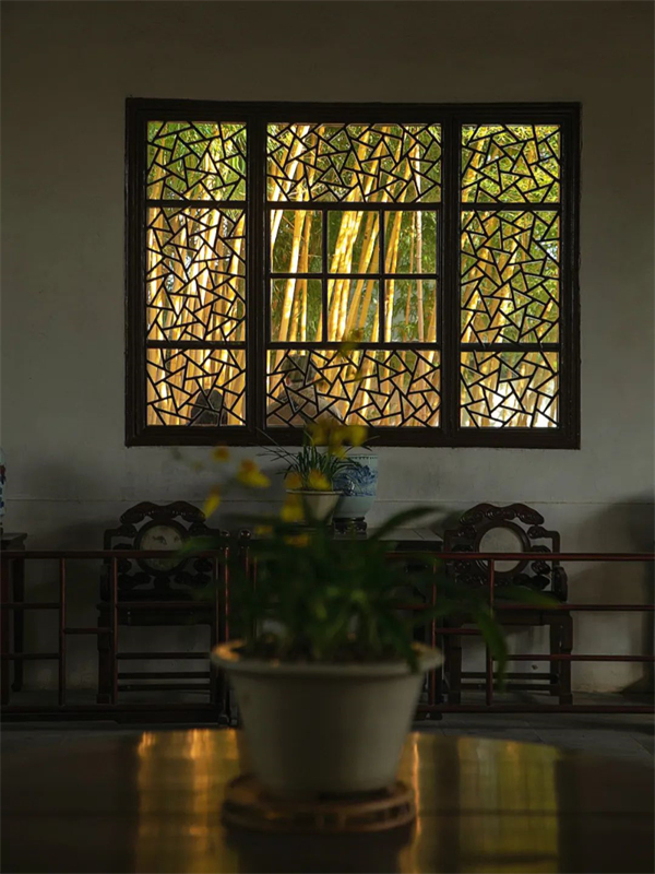 窗欞作為中國(guó)傳統(tǒng)木構(gòu)建筑的框架設(shè)計(jì),是中式建筑的審美體現(xiàn)之一。正所謂“一窗一景致,一窗一境界?!痹诖扒奥斡^景,猶如置身于畫(huà)廊之中,沉浸式欣賞一幅幅優(yōu)美的詩(shī)文圖畫(huà),令人心曠神怡。