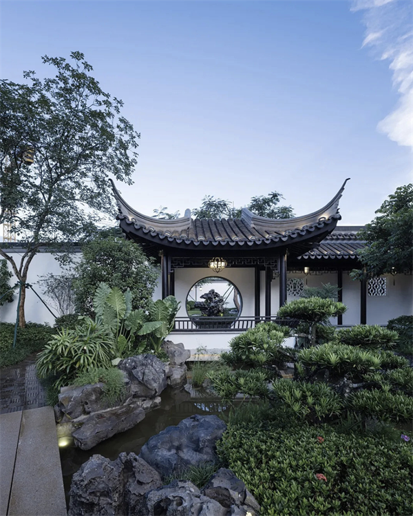 清茗酬知己,煮茶會(huì)佳人。在獨(dú)具生活美學(xué)氛圍的空間品茶,也使茶事品茗的文雅意趣更上一階。本案茶室空間,將中式意境美和自然景色完美相融。墻壁上的一帆風(fēng)順精致鏤雕精益求精,寓意出入平安,事業(yè)順達(dá)。