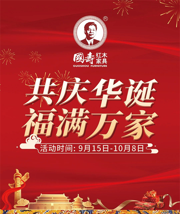 9月15日—10月8日,國(guó)壽紅木開(kāi)展“共慶華誕·福滿萬(wàn)家”活動(dòng),以“雙節(jié)大禮包,五福臨門(mén)”等福利同慶雙節(jié),萬(wàn)家共享盛世,共聚團(tuán)圓。