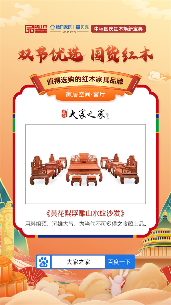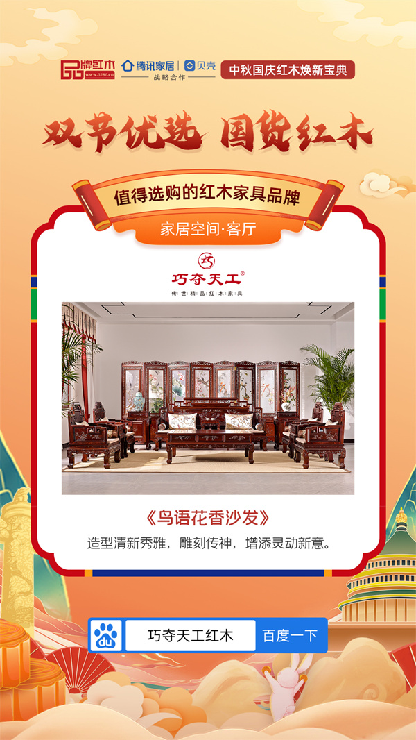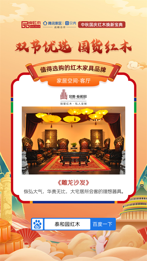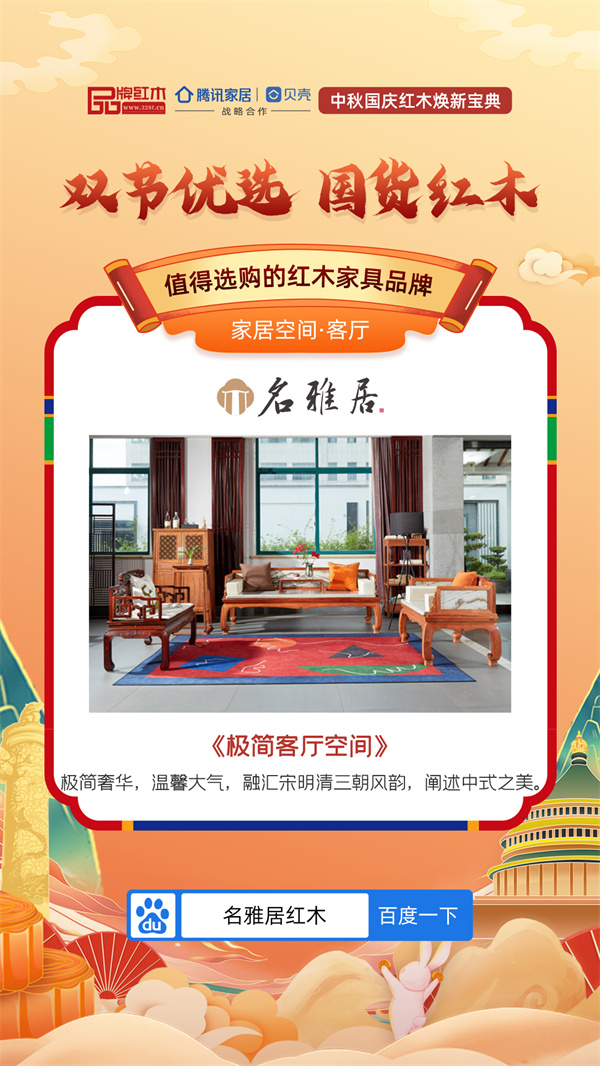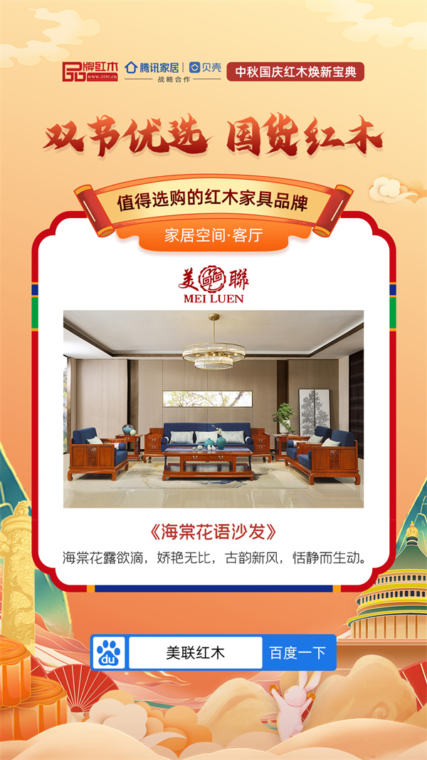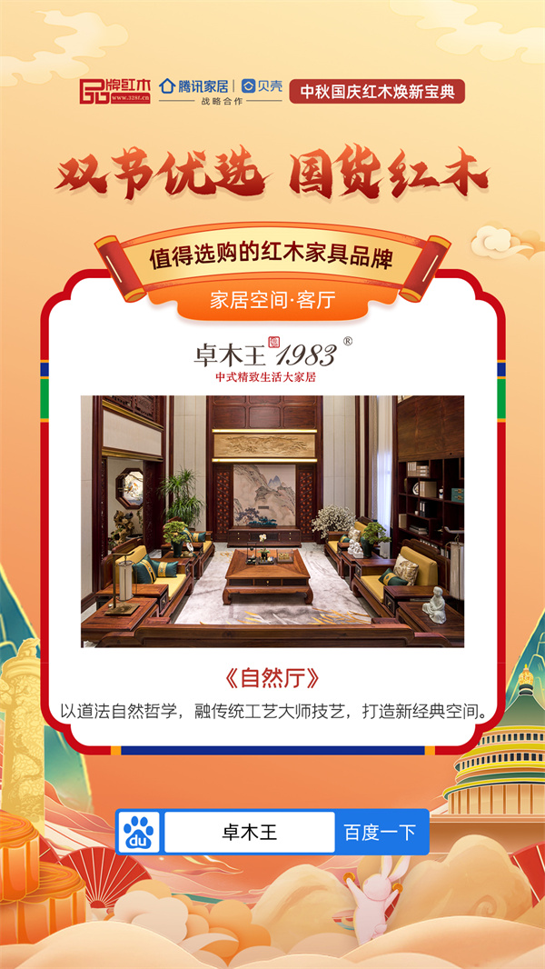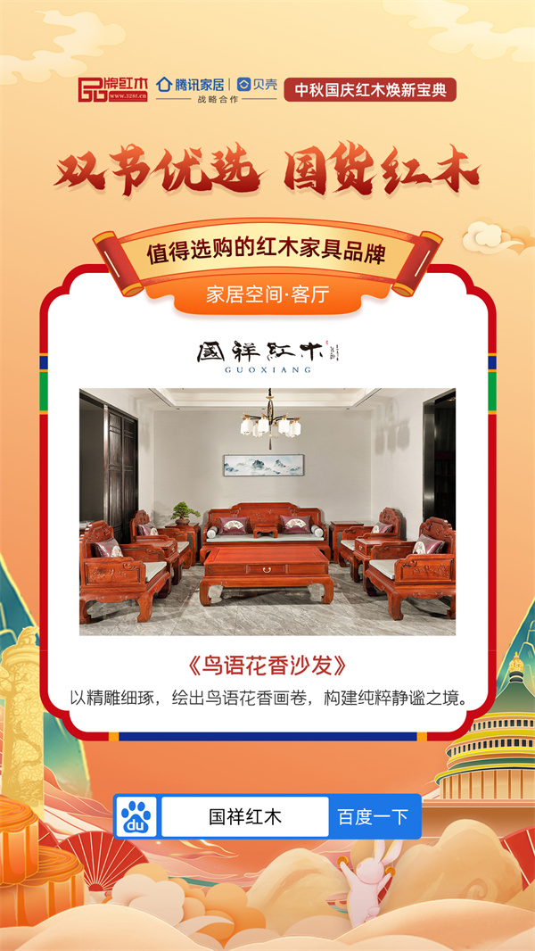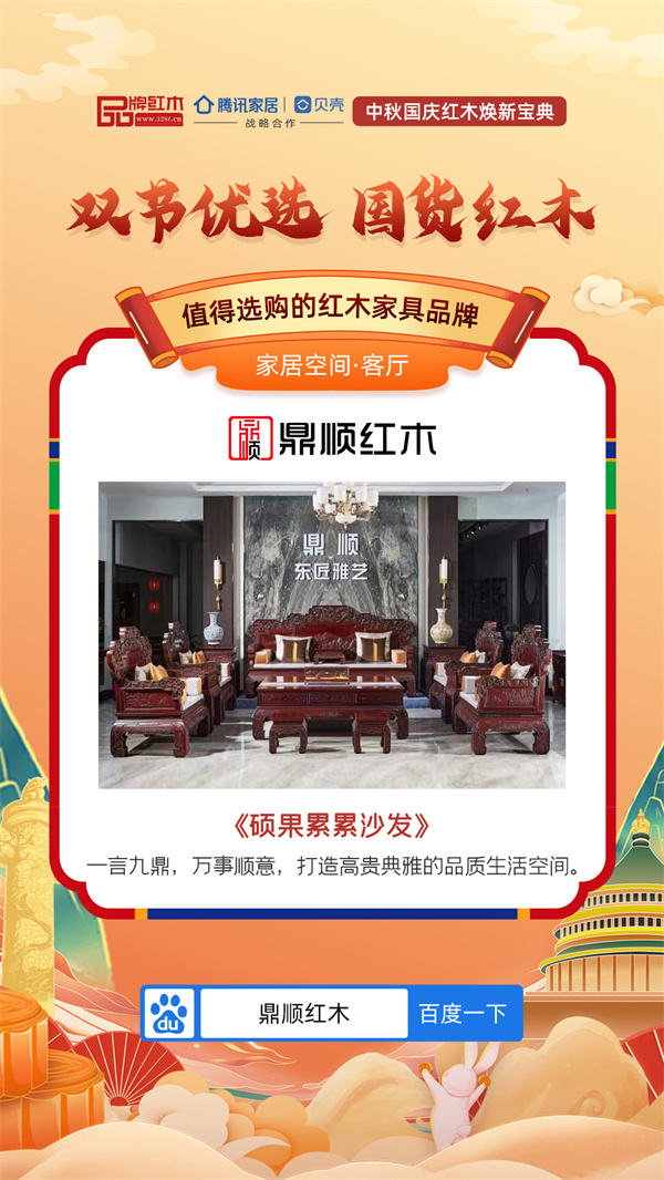 品牌紅木、騰訊家居|貝殼聯(lián)合推出“中秋國慶紅木煥新寶典”,以“雙節(jié)優(yōu)選 國貨紅木”為主題,精選十九款客廳空間紅木好物,讓你不再為選購紅木家具而煩惱!