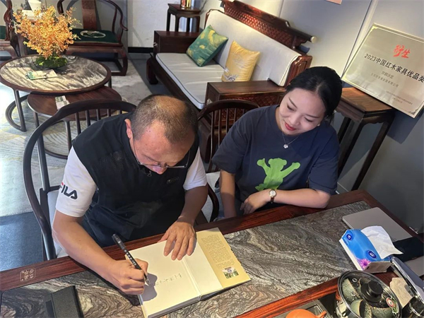作為國潮家居的典范品牌,京熹國潮家居也得到了知名學(xué)者和專家的認可和支持。展會上,故宮博物院研究館員周京南,原故宮博物院文??萍疾恐魅尾莒o樓也來到京熹展位品鑒新產(chǎn)品,溝通紅木發(fā)展新趨勢。