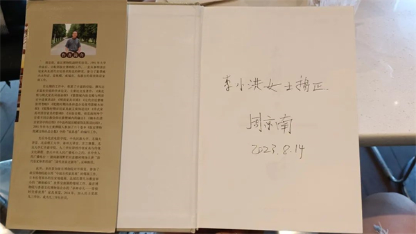 故宮博物院研究館員周京南(左)贈書于京熹國潮家居董事長李小洪(右)