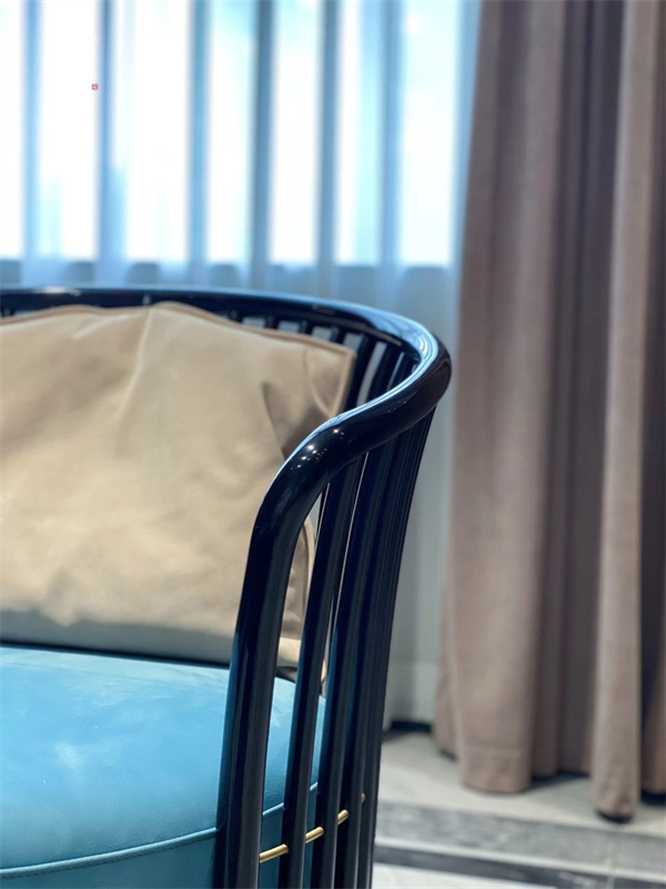 《素創(chuàng)茶椅》屏除雕花設(shè)計,線條流暢光滑,靠背融入了科學(xué)的人體工學(xué)設(shè)計,大膽以皮質(zhì)軟包作為支撐,長時間倚靠也絲毫不會帶來不適感。微微傾斜結(jié)構(gòu),貼合人體曲線,讓倚靠更為舒適,恰到好處的細(xì)節(jié)設(shè)計體現(xiàn)出巧奪天工的精細(xì)。