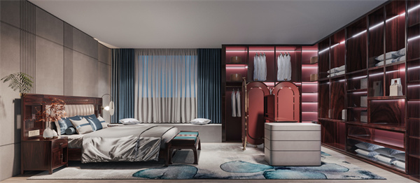 在臥室整體布局構(gòu)建上,慕東方以古時臥房為參考,但結(jié)合現(xiàn)代人需求,賦予空間更多的自然靈性,強調(diào)開敞通透。