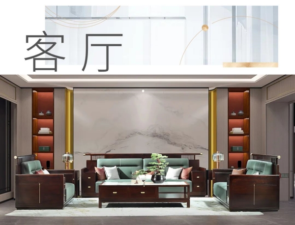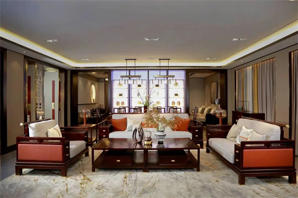 [摘要]中信紅木致力于打造舒適人居的客廳空間。