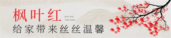 楓葉紅的點綴讓家居空間彰顯明亮、熱情、溫暖之感,多了一份內斂和穩(wěn)重。
