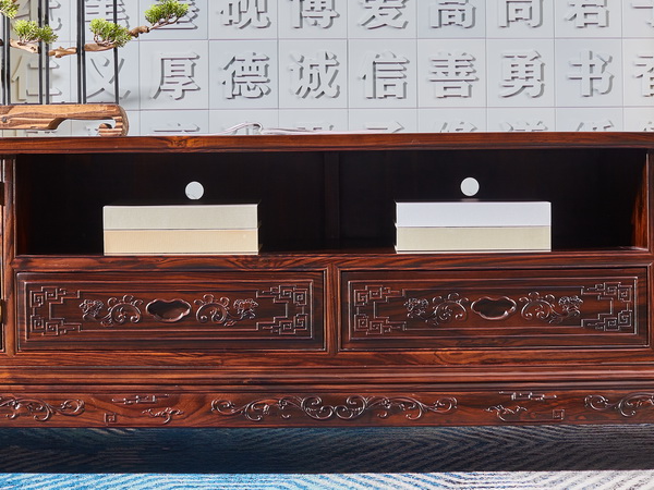 順泰軒紅木家具黑酸枝新古典家具在設(shè)計(jì)和工藝方面極具考究。以電視柜為例,設(shè)計(jì)師將黑酸枝的紋理和色澤運(yùn)用得淋漓盡致,使家具本身與家居環(huán)境相得益彰。