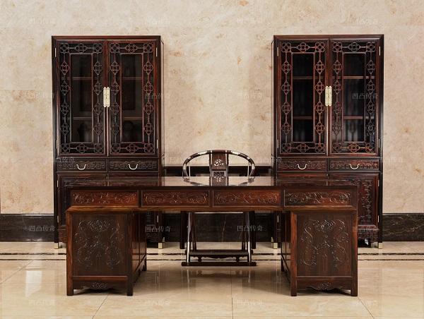 紅木書柜質(zhì)地厚重,線條明朗,其書香氣息更為濃厚,再搭配上經(jīng)典的紅木工藝,能讓整間書房充滿古樸的書卷氣。