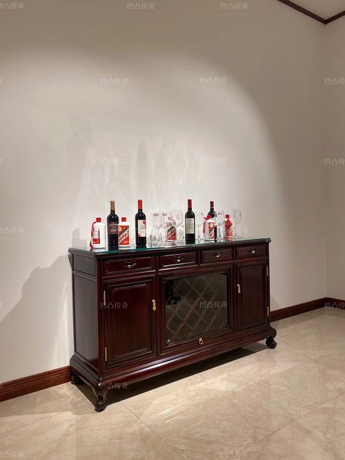 一款蘊含中式古典韻味的紅木餐邊柜,實用性與美觀度同在,美觀大方,十分適合裝飾中式家居空間。