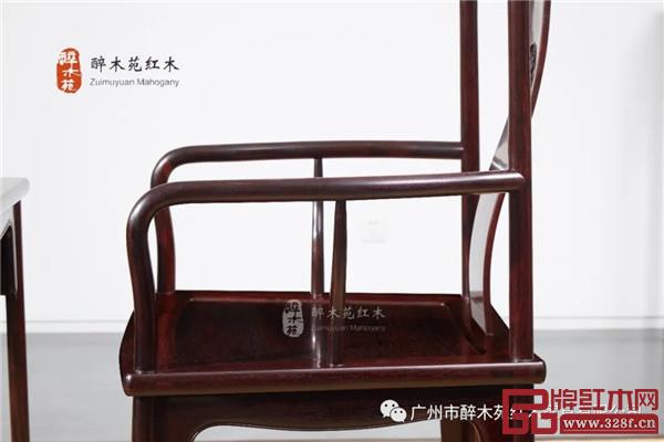 這款官帽椅尺寸碩大,坐盤(pán)寬敞而且高度也比較高,弧形的椅背呈“S”型弧度,符合人體工程學(xué)原理,人坐于上面,貼合度較高,久坐,不會(huì)給人正襟危坐之感,而給人以舒適和愜意。
