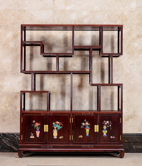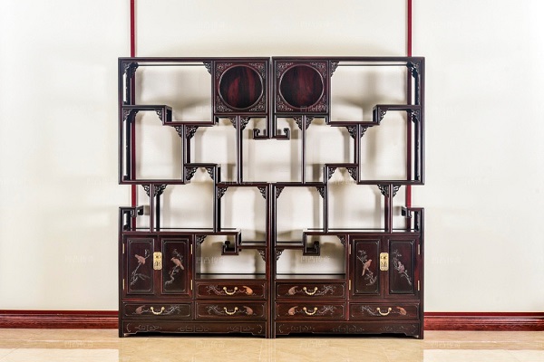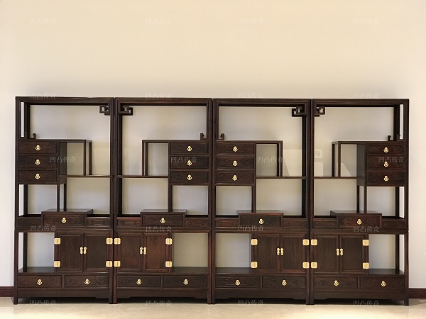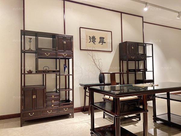 在端莊典雅、文化味兒十足的中式家具系列里,博古架起著“畫龍點睛”的作用,有存古賞今之意。