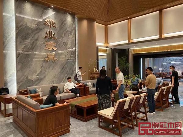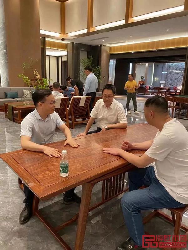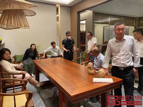 雙方就紅木產(chǎn)業(yè)基地的發(fā)展問題進(jìn)行了深入探討,胡書記對(duì)雄業(yè)家具的全流程高標(biāo)準(zhǔn)生產(chǎn)表示高度贊賞。