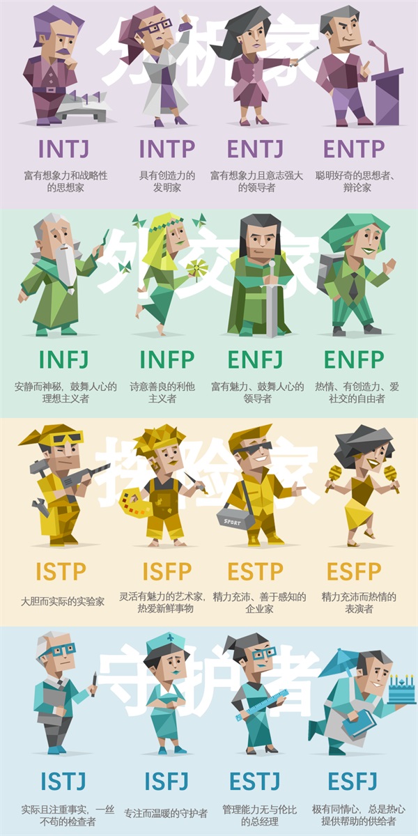 MBTI是根據(jù)榮格的心理類型理論著成,可分為16種人格類型。每種人格由四個(gè)字母表示,且具有獨(dú)特的性格特征。