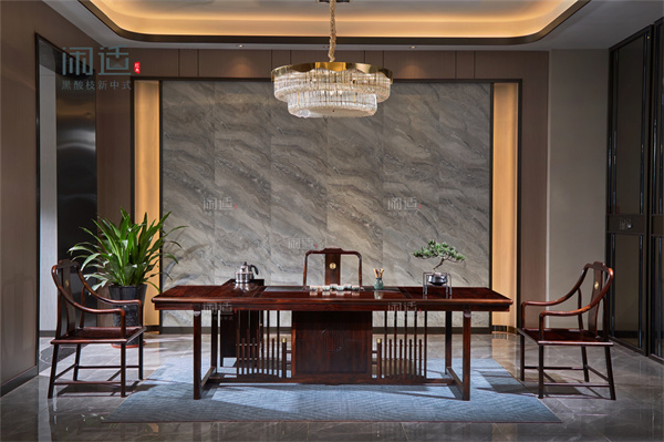 閑適紅木《2.6米上水茶臺(tái)》,茶臺(tái)整體設(shè)計(jì)不囿于常規(guī),簡潔的線條,讓空間呈現(xiàn)出干凈利落的既視感,獨(dú)具生活之美。