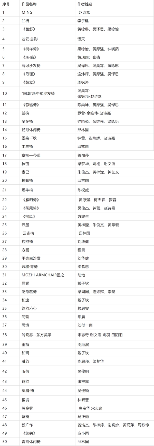 附:華筆獎·第十五屆紅古軒杯新中式家具設(shè)計大賽復賽作品入圍名單