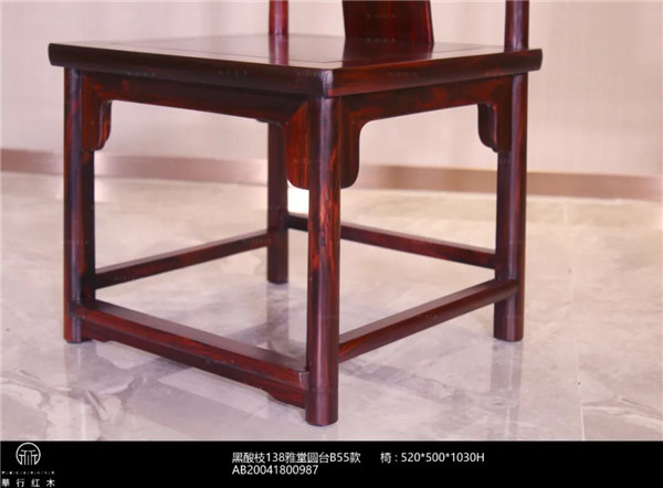 餐椅椅腿一木連做,更牢固結(jié)實(shí);腿足四腿八挓,寓意四平八穩(wěn)。