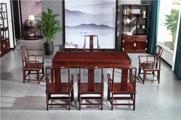 紅木質感溫潤細膩,具有很強的親和力,是大自然賜予人類珍貴的禮物,將其打造成紅木桌,增添了家庭的溫度、生活的質感,感官的舒適,進而達到身心的愉悅。