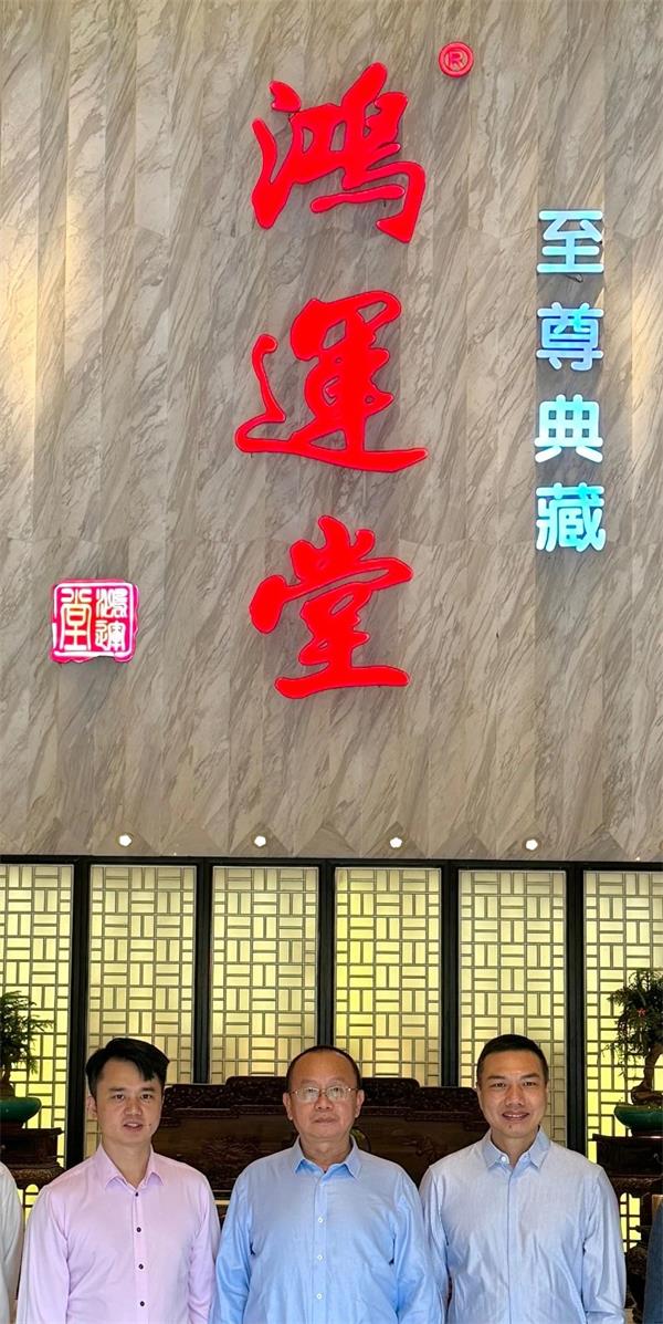11月13日上午,故宮博物院“英才計(jì)劃”周京南(中)研究員一行走進(jìn)中山市鴻運(yùn)堂大紅酸枝典藏館(以下簡稱鴻運(yùn)堂),中山市紅木古典家具學(xué)會會長、品牌紅木CEO林偉華(左一),故宮博物院副研究館員劉林琳、館員門昕寧等陪同調(diào)研,鴻運(yùn)堂總經(jīng)理蕭耀能(右一)熱情接待周京南研究員一行。