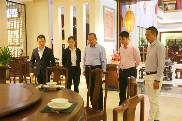在蕭耀能總經(jīng)理的陪同下,周京南研究員一行深入鴻運(yùn)堂大紅酸枝典藏館,近距離觀摩鴻運(yùn)堂精心打造的大紅酸枝精品家具。