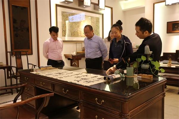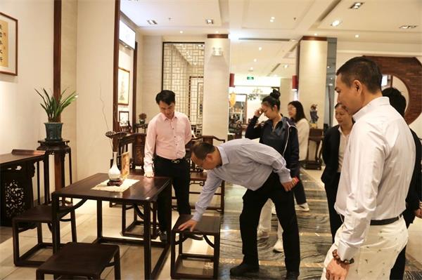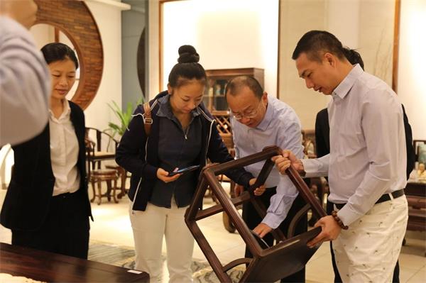 此次到訪鴻運(yùn)堂,周京南研究員一行從家具器型、用材、工藝、韻味等方面對鴻運(yùn)堂大紅酸枝家具進(jìn)行了細(xì)致的品鑒。