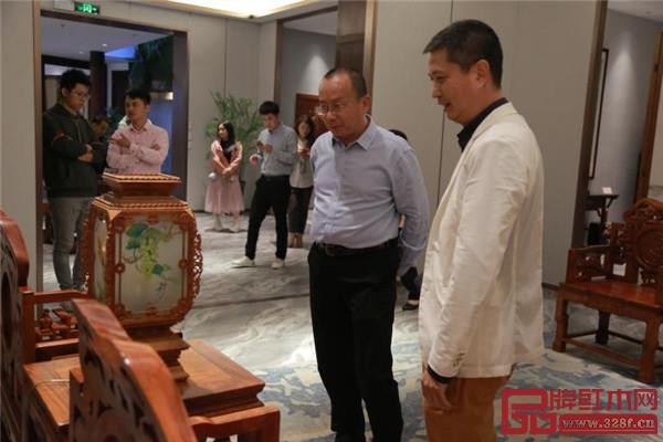 國方家居陳新平大師為周京南研究員介紹精品家具