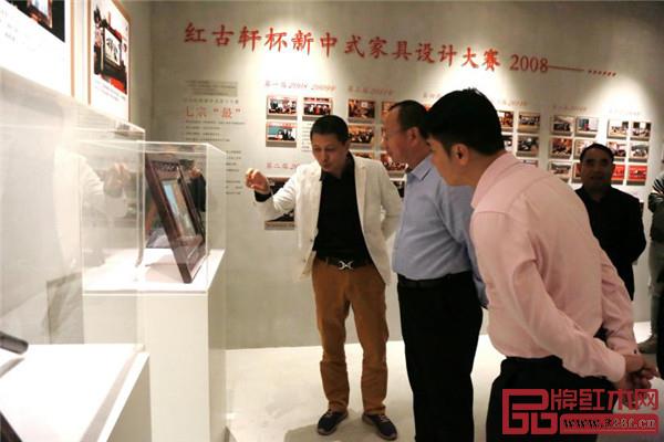 紅古軒品牌創(chuàng)始人吳赤宇陪同故宮博物院家具研究員周京南參觀紅古軒文化長廊