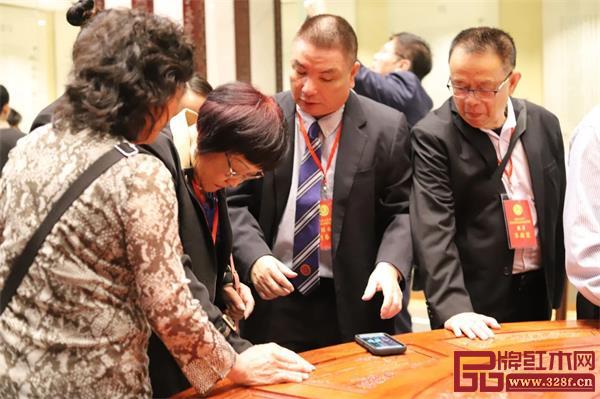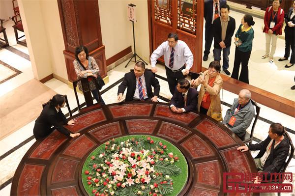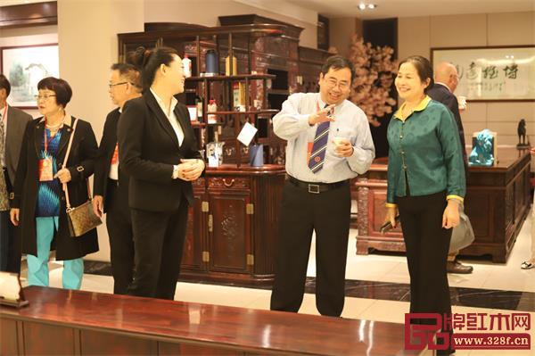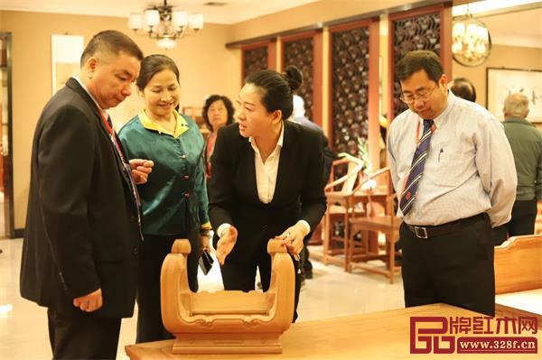 作為中國經(jīng)典傳統(tǒng)文化符號之一,紅木家具滿載著中式情懷和儀式感,國方家居總部大廈內(nèi)陳列的大量明清經(jīng)典款家具,讓許多訪問團(tuán)的成員們愛不釋手。而訪問團(tuán)成員在得知國方家居創(chuàng)始人陳新平帶隊設(shè)計制作完成的“中國國家版本館”項目后,更是對這一重大傳世文化工程能由家鄉(xiāng)企業(yè)承接完成,感到贊嘆和自豪。