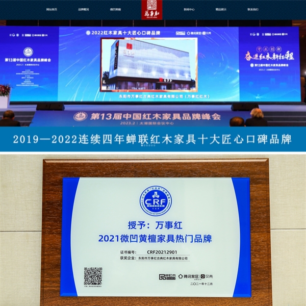 萬事紅紅木獲得業(yè)界認可表彰