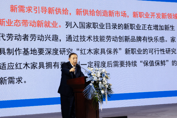 國務(wù)院參事室特約研究員、人社部原常務(wù)副部長、中國勞動(dòng)學(xué)會(huì)會(huì)長楊志明帶來了《加快數(shù)字賦能 中國家具文化的傳承與創(chuàng)新》主題分享