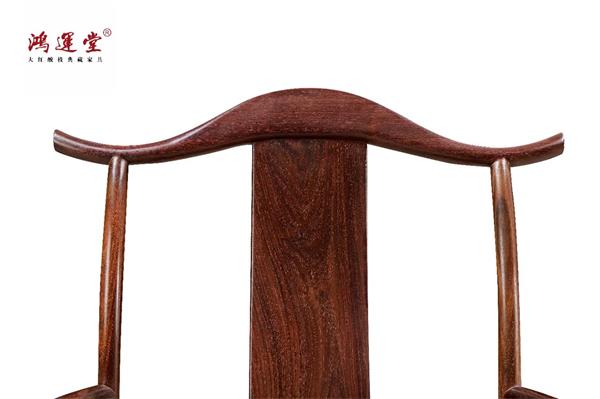 其線條的運(yùn)用表現(xiàn)在各部件上,如搭腦、扶手、腿足等,線性都非常流暢,動(dòng)靜相宜,極富視覺沖擊力。