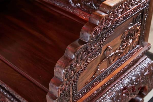 家具的點(diǎn),在合理構(gòu)圖的基礎(chǔ)上,比較雕刻的各個(gè)點(diǎn)的做工差異。比如絲翎檀雕:雕刻自然,刀痕流暢,遠(yuǎn)看其形,近看其工,細(xì)看其細(xì)微之處,形神兼?zhèn)?,才可稱得上工藝精湛。