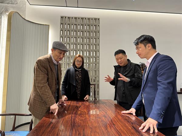 11月27日,全聯(lián)藝術(shù)紅木家具專業(yè)委員會(huì)專家顧問(wèn)、故宮博物院文??萍疾吭魅尾莒o樓來(lái)到浙江東陽(yáng),在全聯(lián)藝術(shù)紅木家具專業(yè)委員會(huì)執(zhí)行會(huì)長(zhǎng)、品牌紅木CEO林偉華的陪同下走訪紅酸枝精品家具專業(yè)制造企業(yè)鼎順紅木,受到了鼎順紅木董事長(zhǎng)蔣國(guó)順的熱情款待。