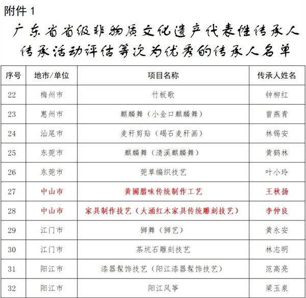 近日,廣東省文化和旅游廳公布了2022年省級非物質(zhì)文化遺產(chǎn)代表性傳承人傳承活動評估結(jié)果。本次活動共546位省級非物質(zhì)文化遺產(chǎn)代表性傳承人納入評估,經(jīng)省文化和旅游廳組織實地抽查、綜合評估、公示,優(yōu)秀等級52人,合格435人。其中,中山市優(yōu)秀傳承人2人,紅古軒李仲良大師榜上有名!