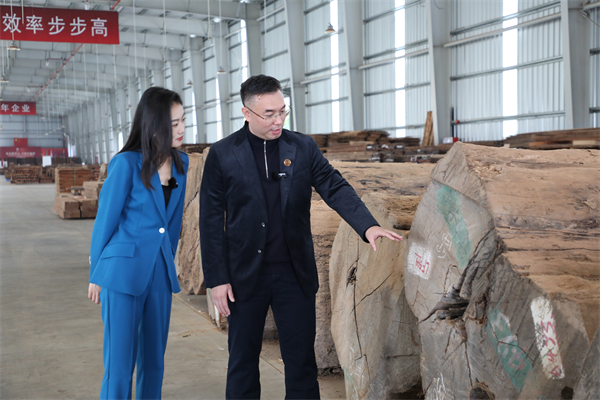 國(guó)壽紅木創(chuàng)始人陳國(guó)壽與《大國(guó)工廠》欄目一同參觀國(guó)壽紅木湖北工廠展廳