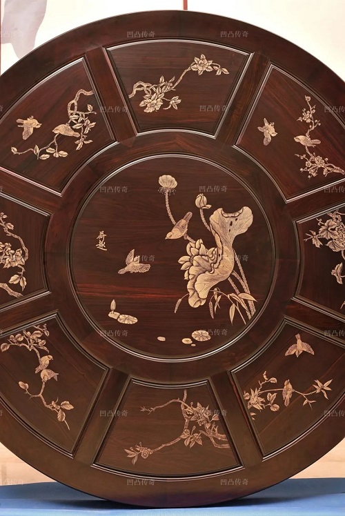 《影雕戧金圓桌》采用圓形設(shè)計(jì),寓意著團(tuán)圓和諧。圍坐在圓桌旁,家人可以分享美食,暢談生活瑣事,增進(jìn)感情。這種親情和團(tuán)圓的氛圍不僅讓人感受到家的溫暖,也能讓人們更加珍惜與家人的相處時(shí)光。