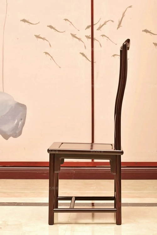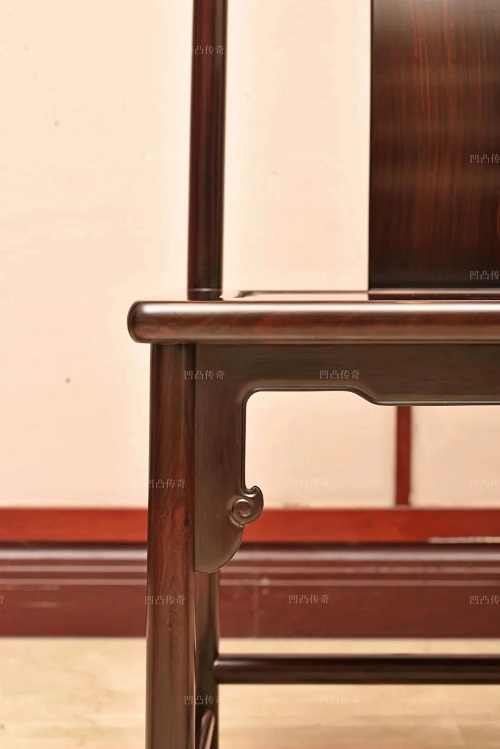 這款《影雕戧金圓桌》的椅子設(shè)計(jì)極具特色,其中最引人注目的是椅子的搭腦部分。