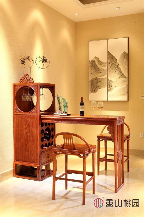紅木家具搭配小巧精美的擺件,風(fēng)格雅致,集實(shí)用、觀賞、保值于一體。