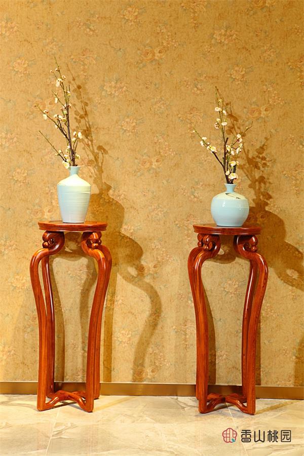 紅木厚重沉靜,鮮花輕盈靈動(dòng),有了紅木的襯托,鮮花變得更加顯耀,紅木變得富有生機(jī)。