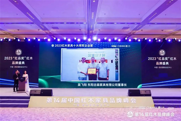 “領(lǐng)導(dǎo)者不是跟著別人的路走,而是開辟自己的道路”。正是吳飛陽的篤行不怠,古森紅木才得以不斷創(chuàng)新、勇攀高峰,他是當(dāng)之無愧的“2023紅木家具十大領(lǐng)軍企業(yè)家”。