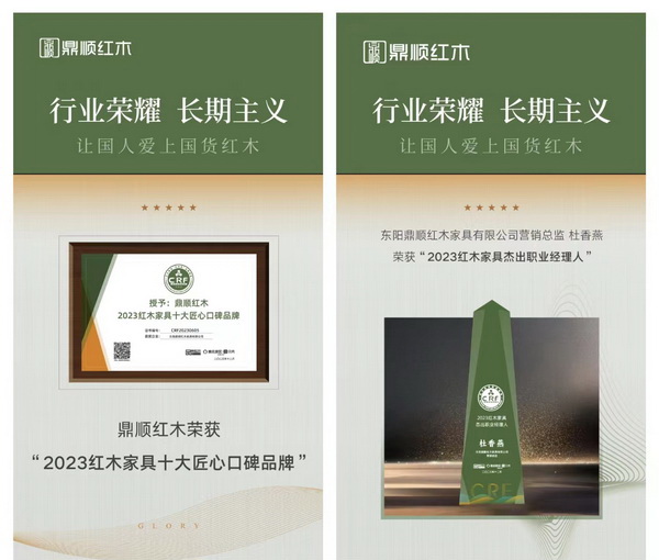 鼎順紅木蟬聯(lián)“2023紅木家具十大匠心口碑品牌”,營銷總監(jiān)杜香燕榮獲“2023 紅木家具杰出職業(yè)經(jīng)理人”稱號,樹立了標(biāo)桿榜樣力量