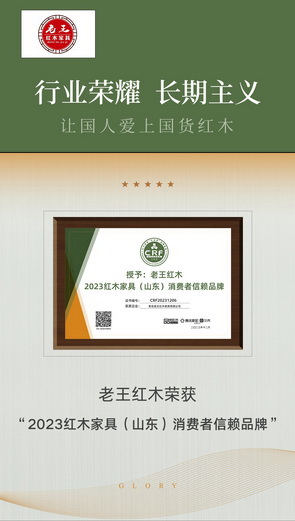 老王紅木榮獲“2023紅木家具(山東)消費(fèi)者信賴品牌”