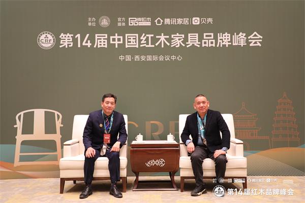 華廈·大不同董事長(zhǎng)陳田華(右)受邀出席第14屆中國(guó)紅木家具品牌峰會(huì)