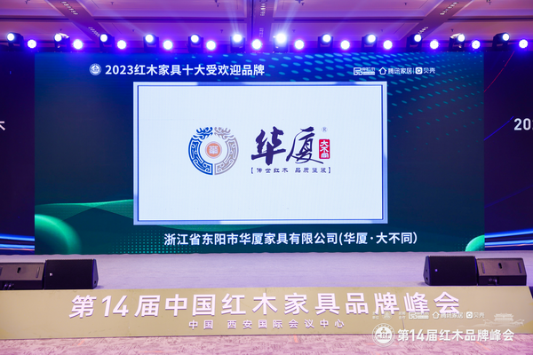 華廈·大不同榮獲“2023紅木家具十大受歡迎品牌”