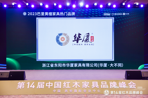 華廈·大不同榮獲“2023巴里黃檀家具熱門品牌”
