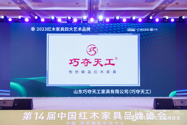 在品牌盛典上,巧奪天工紅木以其深厚的文化底蘊和卓越的設計實力,成功蟬聯(lián)“四大藝術品牌”稱號。